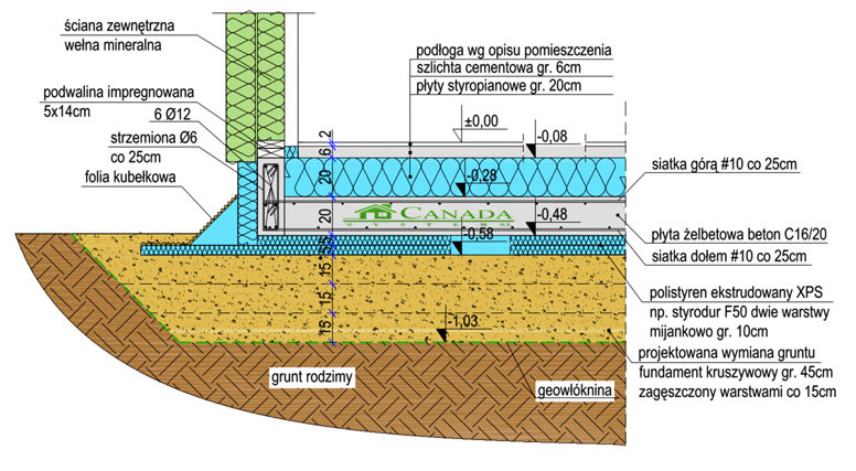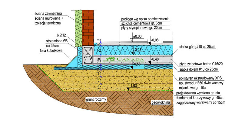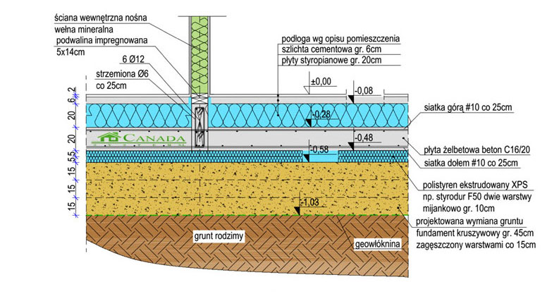 SCHEMAT PŁYTY FUNDAMENTOWEJ W DOMU SZKIELETOWYM U=0,08 W/m2K